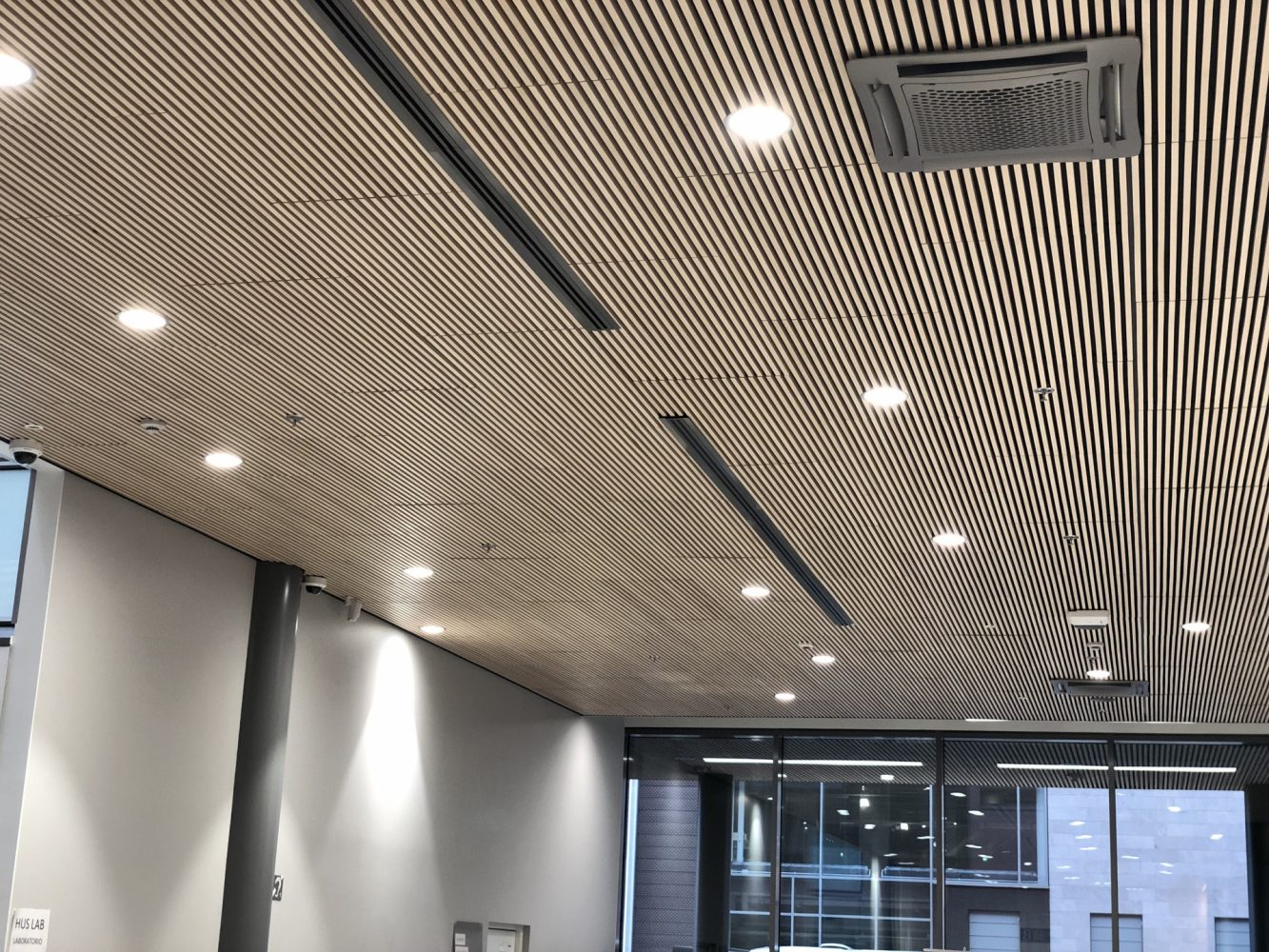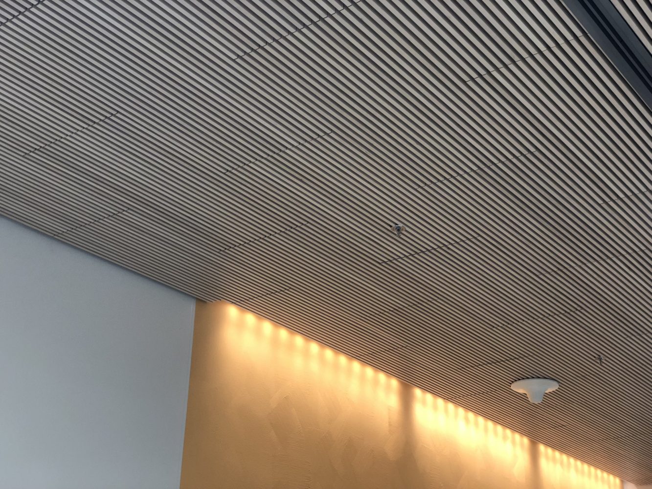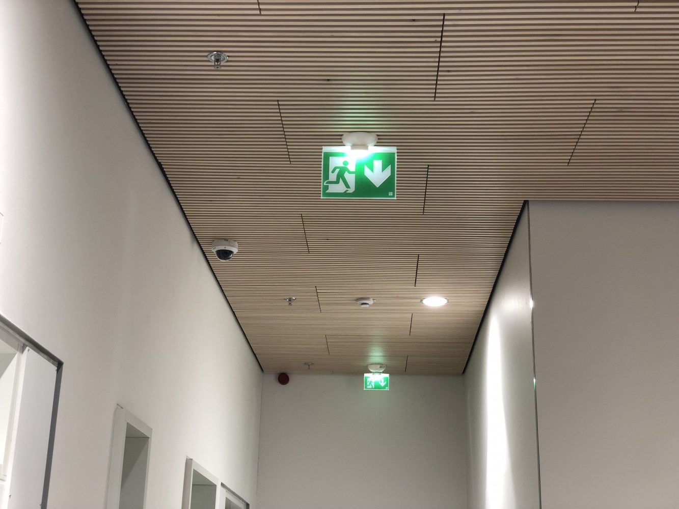 Taustalla palosuojattu akustinen huopa harmaa, valkoinen, musta